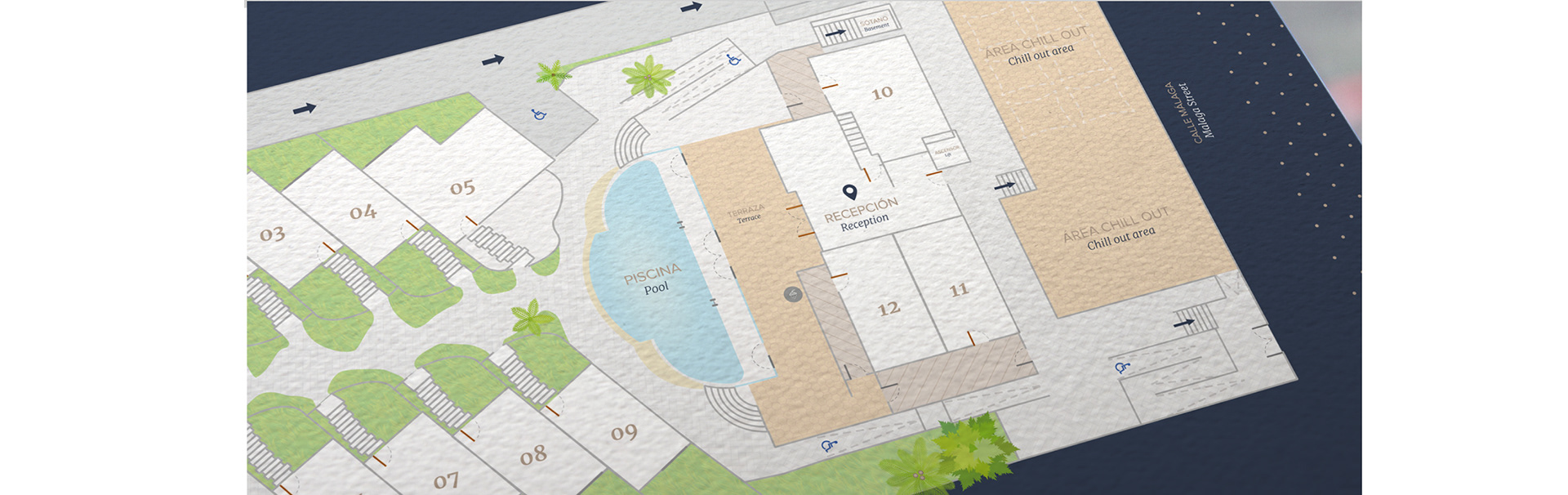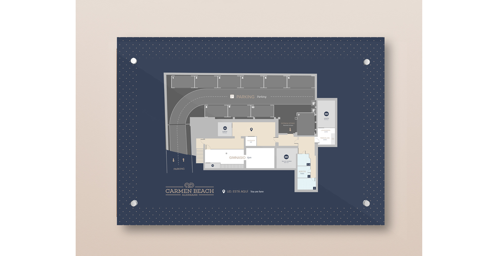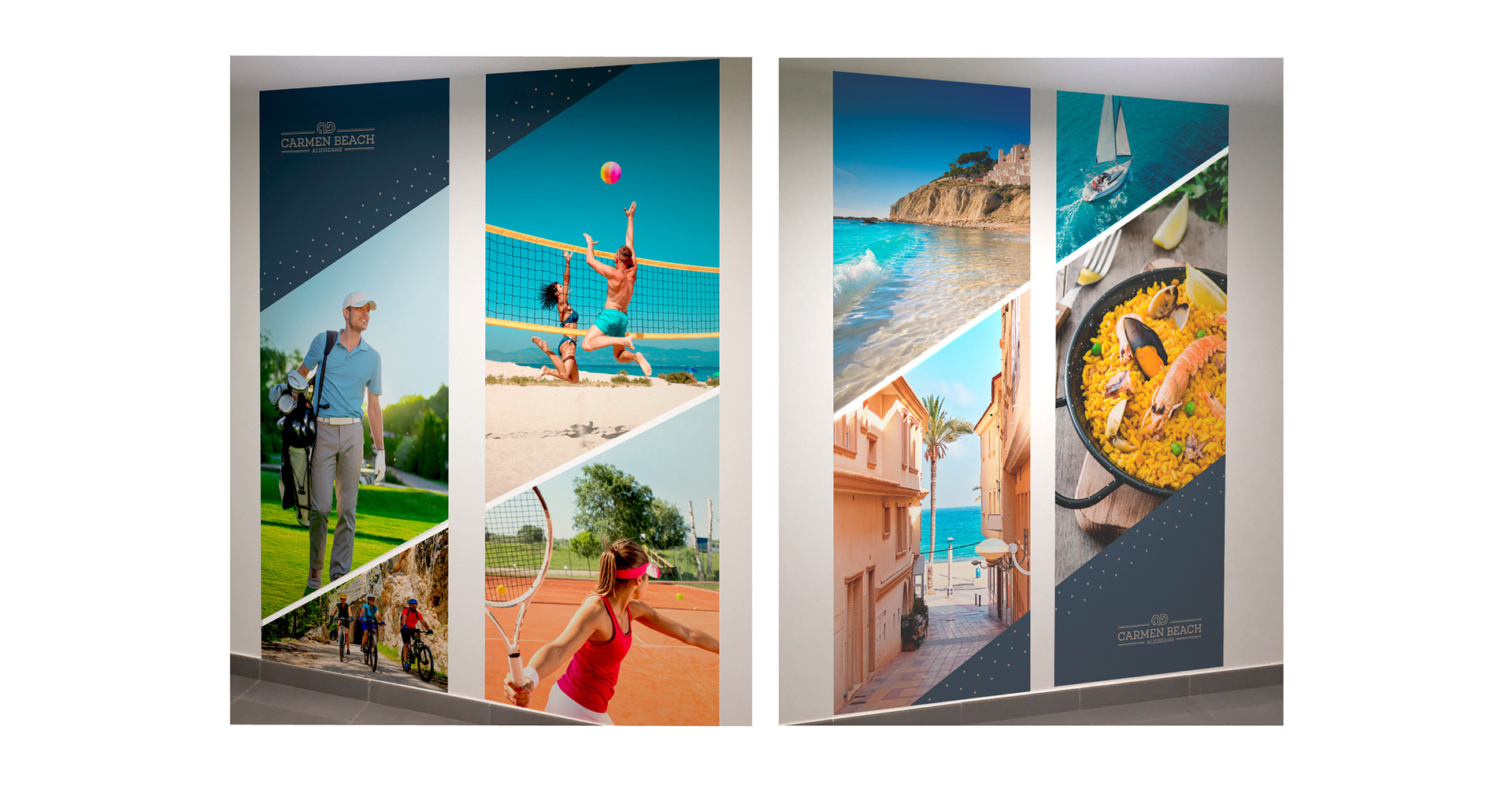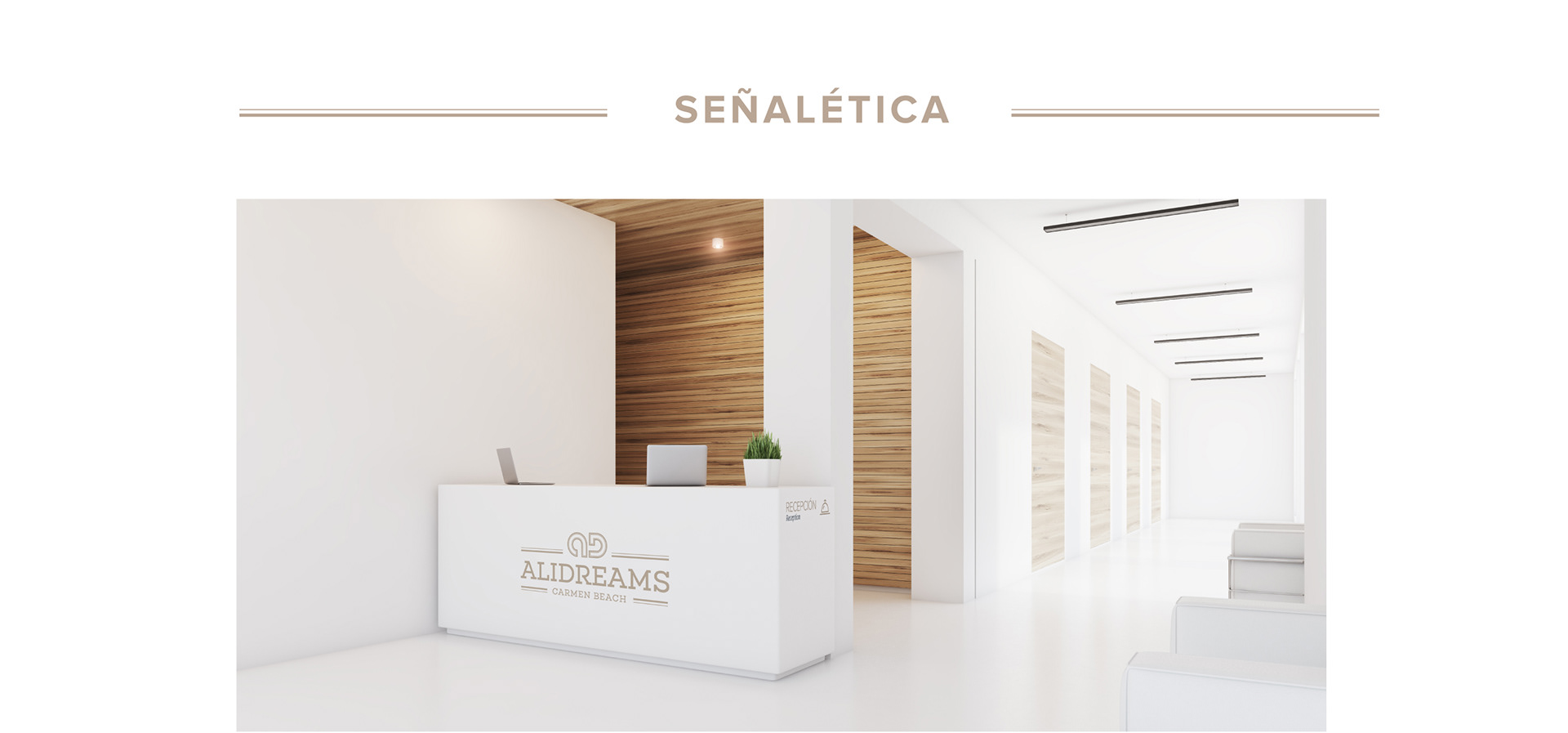 Creación de logotipo y señalética interior y exterior para complejo de apartamentos vacacionales de lujo en Alicante.